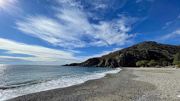 Freude an Bewegung, Schwimmen und Meditation an der Souda Beach